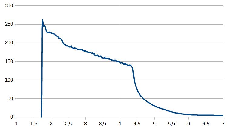 Das war ein 38mm Motor mit 600mm Länge, früher mal ein West Coast Hybrids I110, der aber wie hier beschrieben verändert wurde. Das Grain war so lang wie das Original, könnte aber deutlich kürzer werden um mehr Platz für Oxidator zu machen wink Geworden sind es 526 Ns (23% mehr!) und folgende Kurve: