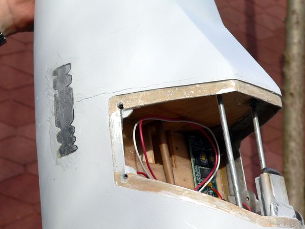 Die Gewindestangen dienen auch dazu bei, die schwere Spitze gegenüber dem Ausschnitt des Cockpit zu stabilisieren.