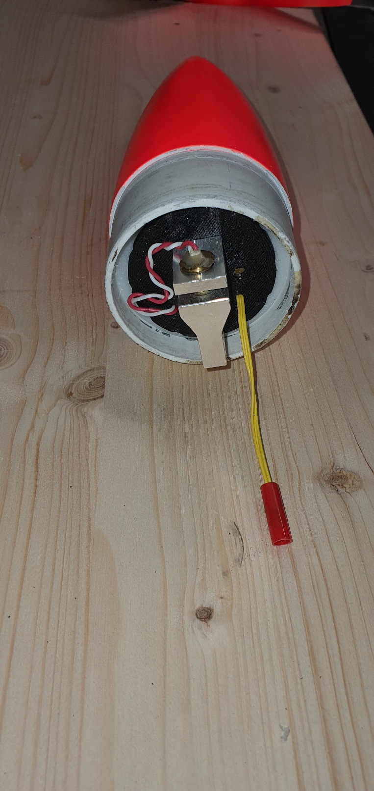 Unten habe ich ein Lora Tracker verbaut. Darüber einen Simpli. Beide haben einen eigenen Akku. Der Plan ist, den Tracker direkt mit dem Akku zu verbinden und ihn schon vor dem Flug zu aktivieren. Der Simpli wird mit einem Schraubenschalter aktiviert. Dazu ist die Bohrung neben dem Relais. Aus Platzgründen muss man die Sn0 Innen auf der Platine anklemmen. Das Pyrorelais ist bei der Goblin etwas überamitioniert, da ich vermutlich keinen Platz für den Fallschirmbehälter haben werde. Schauen wir mal, was mir dazu noch einfällt.